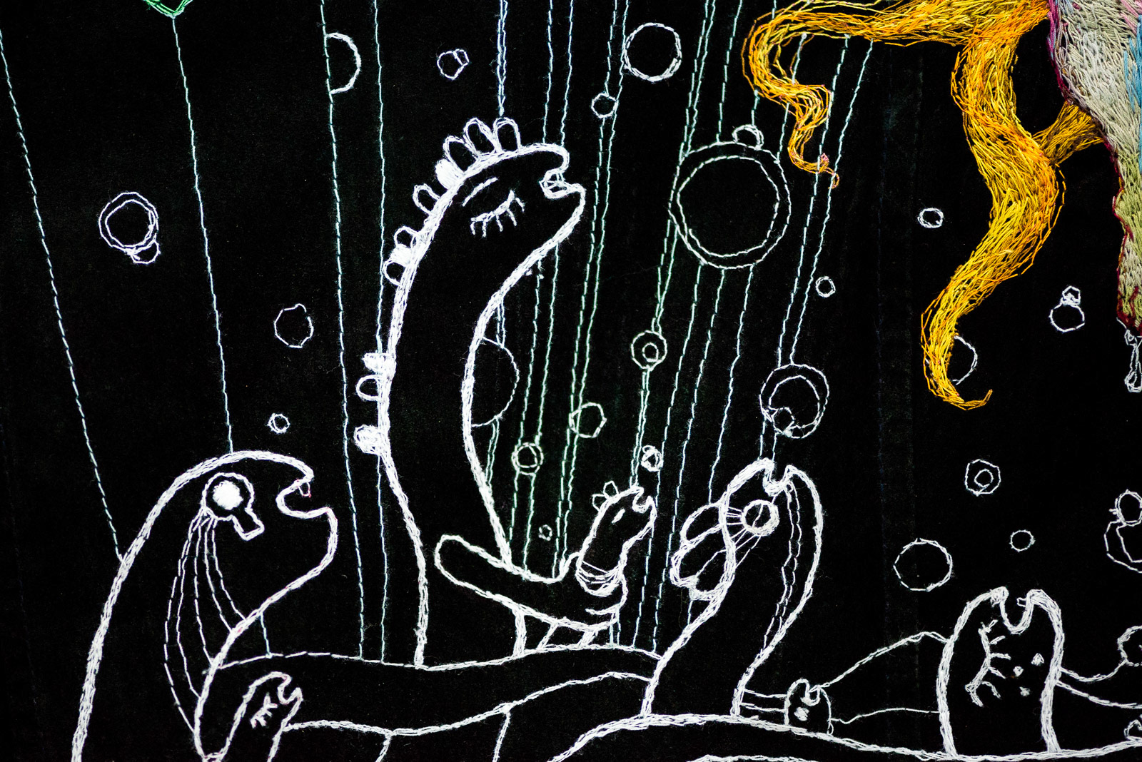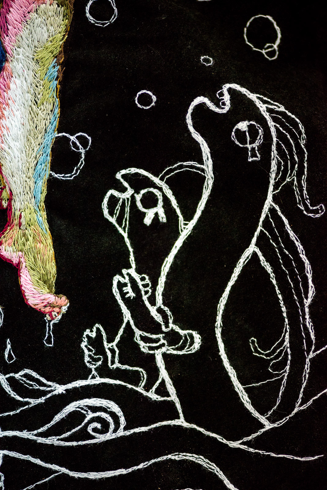 Nanyo is a character from the Birth of Venus embroidery. His phallic form refers to the concept of “the male gaze”, especially in connection to the role served by the nude in the European oil painting tradition.
